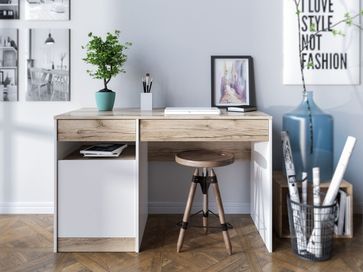 Письменный стол Тафтер — отличный вариант для небольшой комнаты или офиса. Выдвижные ящики и несколько полок позволят поддерживать порядок на столешнице и хранить под рукой всё необходимое для учебы или работы. Благодаря простой геометрии и нейтральным оттенкам модель удачно сочетается с интерьерами в современном или скандинавском стиле.<br>