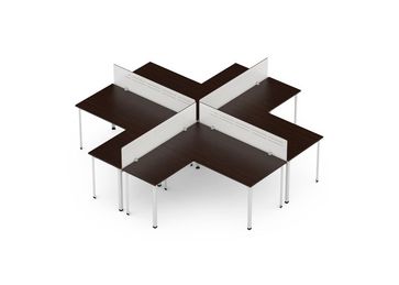 Удобное рабочее место РМ-04/1600 для четверых человек. Используется в офисах, бизнес-центрах, на предприятиях и в других организациях. Рабочее место формируется из 4 столов офисных, 4 столов-приставок и 4 экранов. None