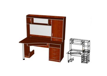 Размеры: 1400х1646hх900. Стол выполнен из ДСП толщиной 16 мм. Имеет 4 удобных ящика для бумаг или документов, выкатную полку под клавиатуру и надставку с удобным вместительным, многофункциональным шкафчиком. Внизу стола имеется полка под системный блок компьютера. Расположение ящиков может быть как справа - стандартное исполнения или слева - для левши, левосторонней исполнение. None Есть доставка. Доставка: 70.0UAH