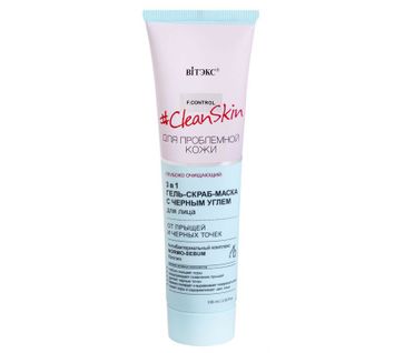 - Biтэкс Clean Skin 3-в-1 ГЕЛЬ - СКРАБ - МАСКА для лица от прыщей и черных точек с черным углем Глубоко очищающий | Витэкс по выгодной цене 219 р. руб.;