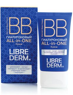 Гиалуроновый ВВ крем Librederm ALL in ONE содержит низкомолекулярную гиалуроновую кислоту, которая не только значительно увлажняет кожу, но и обеспечивает пролонгированный эффект за счет проникновения в глубокие слои дермы. Активный компонент ВВ крема Либридерм - рыжиковое масло - питает и обогащает кожу витаминами F, Е и А, ускоряет клеточный обмен и замедляет процессы старения в клетках кожи, защищая от вредного воздействия ультрафиолетовых лучей и гормональных нарушений. Минимальная сумма заказа 1500 руб. Возможен самовывоз. Есть доставка.