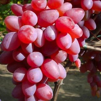 Виноград Кишмиш красный Этот гибридный сорт отличается устойчивостью к заболеваниям и заморозкам (зимует с укрытием при минус 30). Сбор урожая осуществляется с августа по сентябрь. Крупная гроздь при оптимальных условиях достигает массы 1200 грамм. Благодаря отменным вкусовым качествам и урожайности, сорт часто используют для выращивания в коммерческих целях. Выращивание винограда Кишмиш Красный Как и любой другой виноград, кишмиш Красный любит солнце и защищенность от северных ветров. Может выращиваться и плодоносить в легкой полутени. Полив рекомендуется регулярный (два раза в неделю), особенно в жару. Под каждый куст выливают 3-4 ведра воды. При посадке на дно ямы насыпают дренаж из битого кирпича или крупного гравия, а также вносят смесь из золы и суперфосфата. Землю для заполнения смешивают с перегноем. Уже в первый год жизни саженцам требуется вертикальная опора. Преимущества сорта Стабильно высокая урожайность. Отменные товарные качества ягод. Яркий, сбалансированный вкус. Купите саженцы винограда Кишмиш Красный в магазине Беккер и получите посадочный материал премиального качества...Подробнее ->>>
