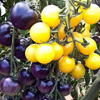 Томат Чернично-сливочный F1, смесь семян Сорт томатов Чернично-сливочный F1 отличается средним сроком созревания и небольшими плодами контрастной окраски. Помидоры могут быть окрашены в темно-фиолетовый или насыщенно-кремовый тона. Внутри плодов красная мякоть с приятным вкусом и высоким содержанием минералов и витаминов. Вес одного плода от 20 до 25 г. Выращивание томата Чернично-сливочный из семян Для ускорения созревания урожая томаты выращивают через рассаду. Посев на рассаду проводят с марта при температуре около +20С в теплицах, допускается сеять помидоры сразу в открытый грунт, если позволяет погода. Глубина заделки 1-2 см. Пикировка при отрастании 2 пары листьев. Почва с нейтральной реакцией, плодородная, легкая....Подробнее ->>>