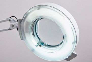 Лампа-лупа на штативе SunDream SD-2021 оснащена колесами для перемещения. Благодаря чему, её можно легко передвигать в любую часть кабинета. Есть специальная ручка, которая позволяет зафиксировать лампу под любым удобным углом. Все пружины закрыты пластиковым чехлом, что уменьшает риск получения травмы при работе с лампой. Встроенная линза предоставляет два варианта увеличения: в основной зоне - 5 диоптрий и в дополнительных зонах (диаметром до 3 сантиметров) - 8 диоптрий. Особенности: