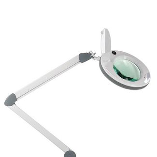 Конструкция лампы-лупы на штативе АтисМед ЛЛ-5 выполнена таким образом, чтобы это оборудование создало наиболее комфортные условия для работы. Модель выполнена из качественного пластика, устойчивого к ударам, загрязнениям. Она легко моется и чистится, не портится от попадания влаги. Для сборки использованы качественные комплектующие. Лампа имеет увеличенный диаметр линзы - ее размеры составляют 15 см. Это обеспечивает максимальный комфорт для глаз. Стекло имеет высокую четкость, устойчиво к механическим повреждениям. Степень увеличения линзы - 5 диоптрий. Лампа оснащена 60 светодиодами, которые дают мягкое и ровное освещение, не искажают цвета. Она подойдет для работы врачей, косметологов, ювелиров или часовщиков. В любой работе, требующей точности, это оборудование станет незаменимым. Лампа установлена на подвижный штатив. С его помощью можно устанавливать оборудование в необходимое вам положение. Есть удобная ручка для регулировки положения лампы. Лампа установлена на устойчивое пятилучье, которое не расшатывается, создавая надежное положение. Пятилучье оснащено небольшими нескользящими упорами. Особенности: