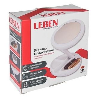 - LEBEN Зеркало косметическое с подсветкой и отделением для хранения, USB 4хАА, пластик, стекло по выгодной цене 1 547 р. руб.;