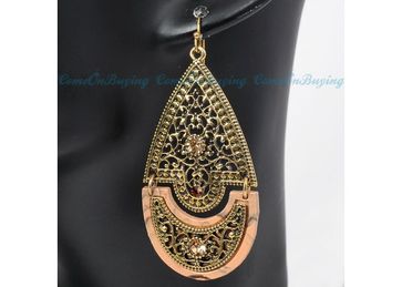 Серьги "Капля золотой воды". В винтажном стиле. Выполнены узорами, с дополнением страз и фрагмента "Мрамор". None Есть доставка. Доставка: 200.0RUB