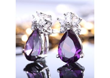Серьги с розовым или синим сапфиром, аметистом, изумрудом или рубином в виде капли, покрытие белым золотом. Размер: 12х14 мм. None Есть доставка. Доставка: 200.0RUB