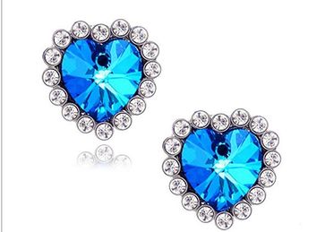 Закажите Серьги-пусеты Сердце океана с кристаллами Swarovski. у компании Магазин бижутерии Rings.su в России на портале Alloy: