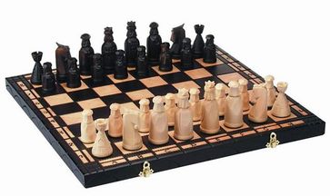Популярность игры в шахматы известна еще с незапамятных времен, когда короли, цари, шахи, генералы часами сидели за одной партией, а в качестве приза победителю мог быть отдан целый замок или большой кусок земли. Шахматы развивают в человеке множество интеллектуальных способностей – логическое мышление, способность предугадывать события, моментальное изменение направления мысли и т.п. Кроме того, от игры в шахматы получаешь эстетическое наслаждение. В данном комплекте из Польши использовано дерево, на котором нанесен рисунок методом выжигания. Доска одновременно представляет собой игровое поле, а в сложенном виде удобную коробку для переноса. Шахматами можно наслаждаться дома, в парке, на отдыхе, на пляже, во время поездки на поезде и т.д. Также это будет очень приятным подарком любимому человеку или другу. None