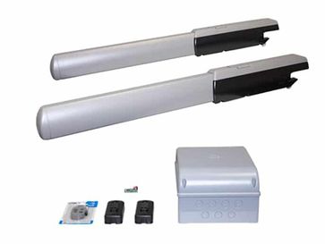 A5000A — Привод 230 В линейный самоблокирующийся — 2 шт. ZF1N — Блок управления — 1 шт. AF43S — Плата-радиоприемник 433.92 МГц — 1 шт. TOP44RGR — Брелок-передатчик 4-х канальный с динамическим кодом — 1 шт. DIR10 — Фотоэлементы / передатчик, приемник / накладные, дальность 10 м — 1 пара