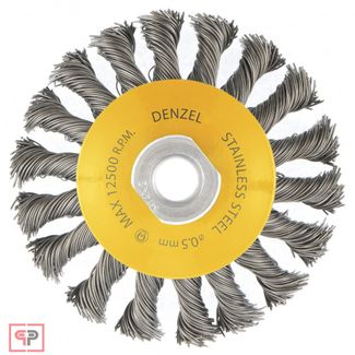 - Denzel Щетка для УШМ, 100 мм, "Тарелка", крученая нержавеющая проволока 0.5 мм, М14 Denzel по выгодной цене 322 р. руб.;