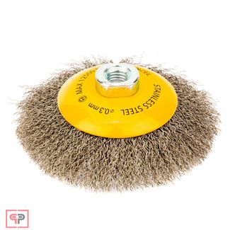 - Denzel Щетка для УШМ, 125 мм, "Тарелка", витая нержавеющая проволока 0.3 мм, М14 Denzel по выгодной цене 382 р. руб.;