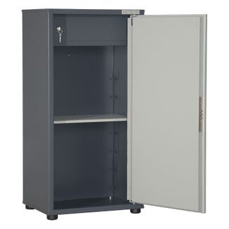 Шкаф бухгалтерский односекционный ШМ-90ТМ2 предназначен для хранения бумажных документов: корпус и дверь шкафа толщиной 1 мм.; шкаф односекционный, оснащен съемной полкой, с изменяемой высотой постановки и трейзером; в двери установлен ключевой 8-ми сувальдный замок ЗАО «Про-Сам» г. Рязань или аналогичный замок другого производителя; шкаф изготовлен по новой, уникальной, технологии нашей фирмы на высокоточном оборудовании; заготовка комплектующих для шкафа ШМ-90ТМ2 производится методом лазерной резки, что позволяет добиться высокого качества и эстетичного вида изделия; скругленные углы дверей повысили безопасность изделия снизив количество травм возникающих при контакте с угловой поверхностью двери; сварка шкафа производится «от лица», позволяя скрыть все места сварки и перенести их на заднюю стенку изделия, что так же улучшает общее впечатление от изделия; цвет: серый None
