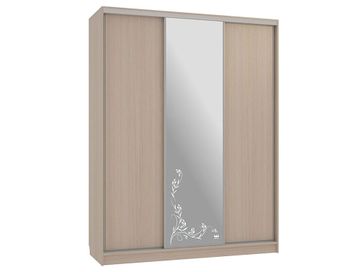 Характеристики: <br> Материал каркаса: ЛДСП 16 мм.<br> Материал фасадов: ЛДСП, зеркало с пескоструйным рисунком.<br> Зеркальный фасад оборудован защитной противоосколочной пленкой.<br> Тип направляющих: стальной профиль.<br> Тип штанг: продольные.<br> Ориентация сборки: только так, как представлено на изображении.<br>