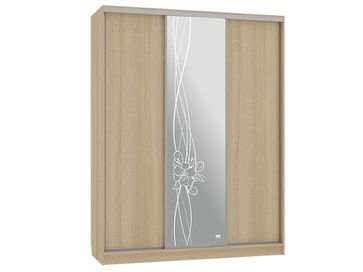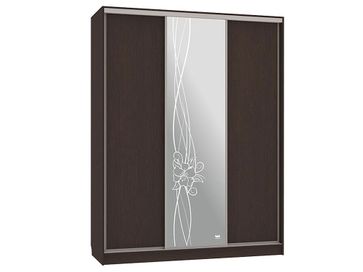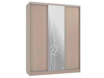 Характеристики: <br> Материал каркаса: ЛДСП 16 мм.<br> Материал фасадов: ЛДСП, зеркало с пескоструйным рисунком.<br> Зеркальный фасад оборудован защитной противоосколочной пленкой.<br> Тип направляющих: стальной профиль.<br> Тип штанг: продольные.<br> Ориентация сборки: только так, как представлено на изображении.<br>