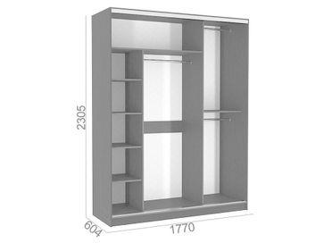 Характеристики: <br> Материал каркаса: ЛДСП 16 мм.<br> Материал фасадов: зеркало с принтерным рисунком, зеркало.<br> Фасады оборудованы защитной противоосколочной пленкой.<br> Тип направляющих: стальной профиль.<br> Тип штанг: продольные.<br> Ориентация сборки: только так, как представлено на изображении.<br>