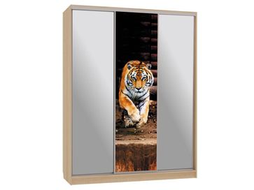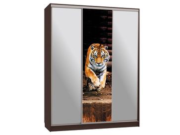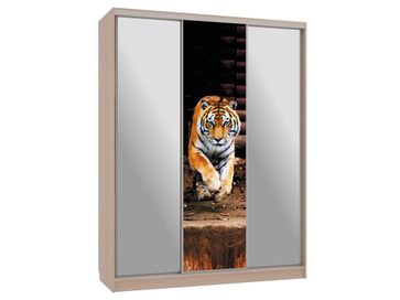 Оригинальное оформление шкафа-купе Бассо 9 Тигр подчеркнет индивидуальность интерьера спальни, гостиной или прихожей. Высокая модель оснащена всем необходимым для удобного хранения сезонной и повседневной одежды, обуви и крупногабаритных вещей. Благодаря зеркальным фасадам пространство комнаты становится визуально просторнее.<br>