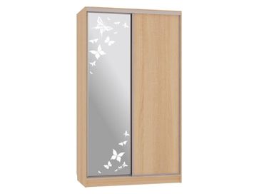 Внутреннее оснащение шкафа-купе Колорадо 1 Бабочки подходит для хранения одежды на плечиках, сложенных вещей и коробок с обувью. Классические оттенки корпуса и фасада легко сочетаются с любой мебелью, а украшенное рисунком зеркало визуально расширяет пространство комнаты.<br>
