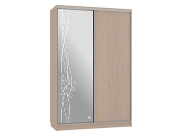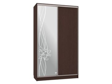 Характеристики: <br> Материал корпуса: ЛДСП 16 мм с кромкой ПВХ.<br> Материал фасадов: ЛДСП, зеркало с пескоструйным рисунком.<br> Зеркальный фасад оборудован защитной противоосколочной пленкой.<br> Тип штанг: продольные.<br> Тип направляющих: стальной профиль.<br> Ориентация сборки внутреннего наполнения: только так, как представлено на изображении.<br>