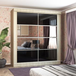 Большой шкаф-купе Орфей-6 — универсальная и продуманная система хранения в одном предмете мебели. Лаконичный стиль исполнения прекрасно впишется в любой современный интерьер и придаст ему завершенный вид.<br> Преимущества:<br> <br> вместительный — отделение с платяной и брючной штангами, множество полок и два выдвижных ящика;<br> зеркальные дверцы — визуально увеличивают пространство помещения и позволяют подобрать идеальный образ не отходя от шкафа;<br> универсальная сборка — собирается как на левую, так и на правую сторону;<br> стильный дизайн — стеклянные вставки на дверцах придают модели лаконичные черты.<br><br> Внутренняя конструкция шкафа представлена разнообразными полочками, на которых найдется место для одежды, белья, постельных принадлежностей и других вещей, а также двумя выдвижными ящиками для мелочей и аксессуаров. Вторая половина модели оснащена двухуровневой штангой для вешалок с одеждой разной длины.<br> Обратите внимание! Данный шкаф требует много места для сборки. Конструкция шкафа предполагает его сборку в горизонтальном положении (лежа). Для того, чтобы шкаф можно было поднять из положения «лежа», высота потолков должна быть больше высоты шкафа не менее, чем на 10 см. Сборка шкафа в вертикальном положении (стоя) гораздо более трудоемкая и часто приводит к повреждению деталей.<br /> При заказе необходимо выбрать нужную ширину шкафа. None Страна производства: Россия