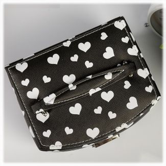 Шкатулка для украшений выполнена в виде сундучка 16*13*11 см из искусственной кожи. Шкатулка "Аиша" трёхъярусная, полный автомат. Нижний выдвижной ярус состоит из одного плоского отделения, средний ярус разделён на два вместительных отсека для хранения крупных украшения и бижутерии, в верхнем ярусе расположены три отделения, одно из которых оснащено валиками для колец. Внутренняя сторона крышки оборудована зеркальцем 11*5 см. Шкатулка закрывается на замок-защёлку с ключиком и имеет удобную ручку-переноску. Внутренняя поверхность шкатулки оформлена светлым флоком, что придаёт ей шарм и изысканность.