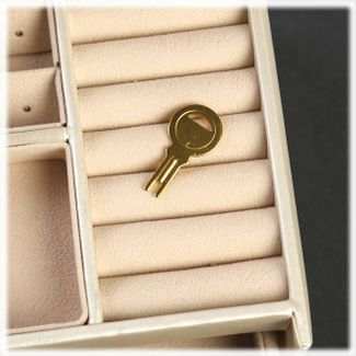 Шкатулка для украшений выполнена в виде сундучка 17*14*12 см из искусственной кожи. "Альбина" - удобная трёхъярусная шкатулка. Нижний ярус представляет собой выдвижной ящик с шестью отделениями для удобного хранения украшений по коллекциям. Второй ярус - это выдвижной ящик с двумя отсеками. В верхнем ярусе расположены четыре отделения, одно из которых оборудовано валиками для удобного хранения колец. Внутренняя сторона крышки оборудована зеркалом 7*5 см и петлями для хранения браслетов и цепочек. Шкатулка закрывается на поворотный декоративный замок с ключиком и имеет удобную ручку-переноску. Внутренняя поверхность шкатулки оформлена искусственной светлой замшей, что придаёт ей шарм и изысканность.