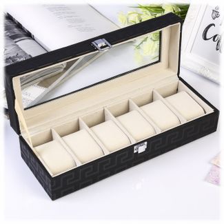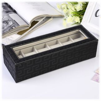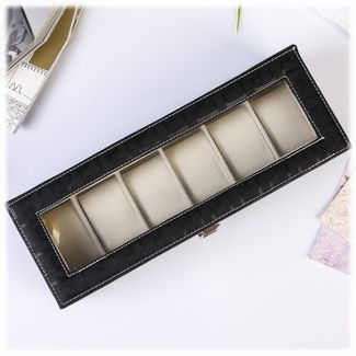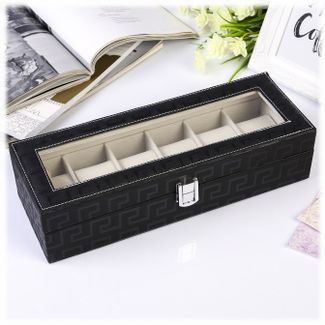 Шкатулка для браслетов и часов размером 31*11*8 см выполнена из текстурной искусственной кожи. Внутри шкатулка "Дамиана" разделена на шесть отсеков, оборудованных валиками для удобного и наглядного хранения часов или браслетов. Крышка оснащена прозрачным стеклом, закрывается шкатулка на замочек. Внутренняя поверхность шкатулки оформлена светлым флоком, что придаёт ей шарм и изысканность.