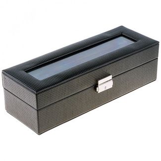 Шкатулка для браслетов и часов размером 29*10*9 см выполнена из чёрной искусственной кожи с очень интересной текстурой. Внутри шкатулка "Дениз" разделена на пять отсеков, оборудованных валиками для удобного и наглядного хранения часов или браслетов. Крышка оснащена прозрачным стеклом, закрывается шкатулка на замочек. Внутренняя поверхность шкатулки оформлена чёрным флоком.