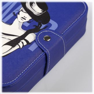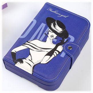 Шкатулка для украшений выполнена в виде книжки 20*14*5 см из искусственной кожи со стильным рисунком. Шкатулка одноярусная, состоит из множества отсеков для разделения украшений по видам и коллекциям, включая отсек с валиками для колец. Внутренняя сторона крышки оборудована зеркалом 12*6 см и кармашком по всей ширине крышки. Шкатулка-клатч закрывается с помощью заклёпки. Внутренняя поверхность шкатулки оформлена светлым флоком, что придаёт ей шарм и изысканность.