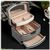 Шкатулка для украшений выполнена в виде сундучка 16*13*11 см из искусственной кожи. Шкатулка "Герда" трёхъярусная, полный автомат. Нижний выдвижной ярус состоит из одного плоского отделения, средний ярус разделён на два вместительных отсека для хранения крупных украшения и бижутерии, в верхнем ярусе расположены три отделения, одно из которых оснащено валиками для колец. Внутренняя сторона крышки оборудована зеркальцем 11*5 см. Шкатулка закрывается на замок-защёлку с ключиком и имеет удобную ручку-переноску. Внутренняя поверхность шкатулки оформлена светлым флоком, что придаёт ей шарм и изысканность.