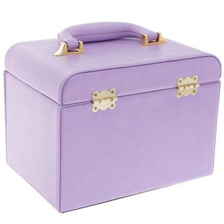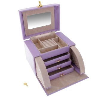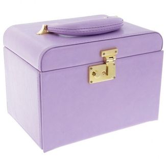 Шкатулка для украшений выполнена в виде сундучка 23*17*16 см из сиреневой искусственной кожи. "Лоелин" - вместительная четырёхъярусная шкатулка. В верхнем ярусе расположены отделения, среди которых отсеки с валиками для колец и прочих небольших украшений, каждое из которых требует собственного пространства. Второй, третий и четвёртый ярусы представляют собой выдвижные ящики для цепочек и браслетов. Внутренняя сторона крышки шкатулки "Лорелин" оборудована зеркалом 14*8 см. Шкатулка закрывается на замок-защёлку с ключиком и имеет удобную ручку-переноску. Боковые стенки шкатулки выдвигаются с обеих стороны. На них с внутренней стороны размещены крепления и кармашек для цепочек и подвесок - очень удобное место, чтобы повесить украшения и избежать их спутывания. Внутренняя поверхность шкатулки оформлена искусственной светлой замшей, что придаёт ей шарм и изысканность.