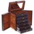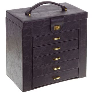 Шкатулка для украшений выполнена в виде сундучка 30*28*17 см из розовой искусственной кожи. "Руби" - большая и удобная шестиярусная шкатулка. Нижние пять ярусов представляют собой выдвижные ящики для удобного размещения всех видов украшений: ярусы без разделителей и с двумя отсеками - для крупных украшений, ожерелий или бижутерии; ярус с четырьмя отделениями для браслетов; ярусы, разделённые на 12 и 20 частей - для разделения украшений по коллекциям. В верхнем шестом ярусе расположены восемь отделений, один из которых оборудован валиками для удобного хранения колец. Внутренняя сторона крышки оборудована большим зеркалом 21*11 см. Кроме того, шкатулка оснащена двумя боковыми отделениями с 16 крючками и 4 кармашками для размещения цепочек и подвесок. Шкатулка закрывается на декоративный поворотный замочек и имеет удобную ручку-переноску. Внутренняя поверхность шкатулки оформлена искусственной замшей, что придаёт ей шарм и изысканность.