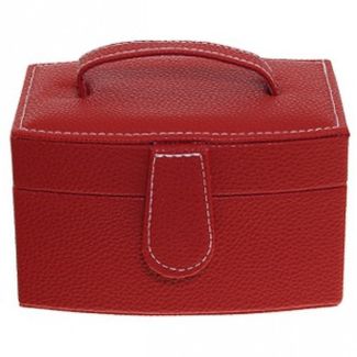 Шкатулка для украшений размером 16*12*10 см выполнена из красной матовой искусственной кожи. Съёмное отделение содержит два боковых отсека для бижутерии, разделённых посередине отсеком с валиками для колец. Объёмное внутреннее отделение подойдёт для хранения крупных украшений и бижутерии. Внутренняя сторона крышки оборудована зеркальцем. Шкатулка закрывается на замок и имеет удобную ручку-переноску. Внутренняя поверхность шкатулки оформлена искусственной светлой замшей, что придаёт ей шарм и изысканность.