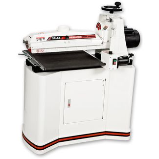 Jet 22-44 OSC осциллирующий барабанно-шлифовальный станок с автоматической подачей заготовки на транспортерной ленте. Основное назначение – шлифование и калибрование изделий из древесины. Модель поставляется в комплекте с тумбой-подставкой, оборудованной колесами и тормозом. Жёсткая конструкция с чугунными основанием и кронштейном крепления консоли обеспечивает высокую точность и повторяемость, что особенно важно в условиях поточного производства. Поскольку вал закреплен с одной стороны, можно шлифовать широкие детали в два прохода с поворотом. При работе с длинными заготовками желательно установить удлинения загрузочно-разгрузочного стола (арт.982202).