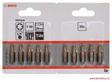 - Bosch Набор 10 Бит 25 мм TORX T20 TiN (2607001692 , 2.607.001.692) по выгодной цене 694 р. руб.;