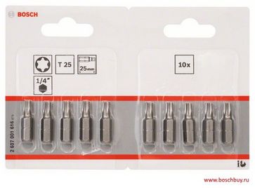 - Bosch Набор 10 Бит 25 мм TORX T25 Extra Hart (2607001616 , 2.607.001.616) в каталоге Шуруповерты в России;