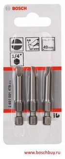 - Bosch Набор 3 Биты 49 мм прямой шлиц 0,8Х5,5 Extra Hart (2607001479 , 2.607.001.479) в каталоге Шуруповерты в России;