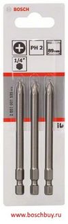Bosch Набор 3 Биты 89 мм PH2 Extra Hart (2607001535 , 2.607.001.535)