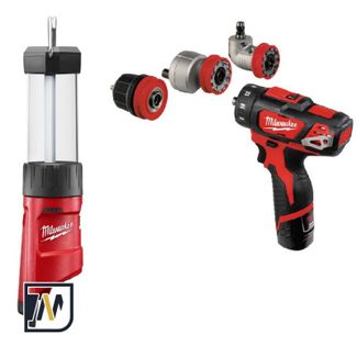 - Шуруповерт Milwaukee M12 BDDX-202C + фонарь по выгодной цене 6 799 р. руб.;