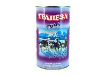 - Консервы для собак Трапеза Прима" Мясное ассорти 1.2 кг " по выгодной цене 136 р. руб.;