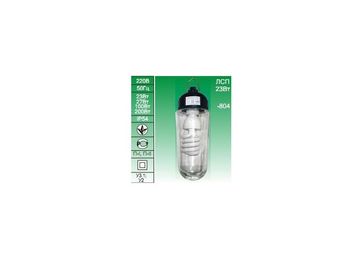 Подвесной промышленный светильник ВАТРА ЛСП11-23-904Для общего освещения промышленных и вспомогательных помещений пожароопасных зон классо П-I, П-II, а также влажных помещений. Светильники ЛСП модификации -904 и НСП модификации -901 могут эксплуатироваться в климатических условиях У1. Температура окружающей среды при эксплуатации: для ЛСП c лампой КЛБ23/ТБ-Е27 Люммакс: от -10 С до +40С; для ЛСП c лампой MASTER PL Electronic 27W/865: от -15 С до +40С; для НСП: от -40С до +40С. КОНСТРУКЦИЯ: Корпусные детали из трудногорючего стеклонаполненного пластика. Светопропускающий защитн колпак из силикатного прозрачного стекла. Крепление колпака к корпусу резьбовое (резьба А85 для 23Вт и 100Вт или А100 для 27Вт и 200Вт по ГОСТ 9503-86). Все исполнения с одним сальниковым вводом для электрокабеля. Класс защиты от поражения электрическим током II по ГОСТ 12.2.007.0 ИСТОЧНИКИ СВЕТА: Энергоэкономные с встроенным ЭПРА компактные люминесцентные лампы типа КЛБ23/ТБ-Е27 Люммакс (Газотрон-люкс), MASTER PL Electronic 27W/865 (Philips). Лампы накаливания 100, 200Вт. Цоколь — Е27. А также другие лампы с аналогичными электрическими параметрами и габаритными размера МОНТАЖ: Крепятся на крюк или на трубу GЗ/4-В. Рекомендуемая высота установки: 3…4м. КОМПЛЕКТ ПОСТАВКИ: Светильник. Лампа по отдельному заказу. ПРЕИМУЩЕСТВА: применение в ЛСП энергоэкономной компактной люминесцентной лампы снижает энергопотребление в 5 сравнению с лампой накаливания при сохранении такого же уровня освещенности; коррозиестойкие и атмосферостойкие материалы корпусных деталей и высокая степень защиты светиль обеспечивают их длительный срок службы, а также позволяют использовать во влажных помещениях и на пространстве; класс защиты II позволяет использовать светильник без заземления; резьбовое соединение защитного колпака с корпусом обеспечивает быструю замену ламп без применен либо инструментов. предо