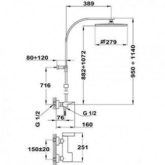 Цвет: хром Душевая стойка с верхним душем Современный дизайн