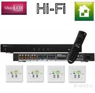 Проводная система мультирум аудио. Проводная система мультирум аудио на 4 источников, 4 зоны (4 зоны усиления) с панелями управления. В комплекте 4 х NV-A4DKP-UKWT 2-ганговых панелей управления UK-style (цвета белый, 2-ганговые рамки для каждой панели), 36 кнопок источников с надписями, обучаемый пульт NV-LRC1, расширитель-концентратор Allport NV-E6GMAP, кабель для системы Allport NV-E6GAPC, кабель питания NV-PC-UK, 4 х ИК-эмиттера NV-VEC, рэковые крепления NV-REM1U. Средняя выходная мощность зоны 1-4 30 Вт (15 Вт х 2). Цифровое усиление. Усилитель с высокой эффективностью работает хладнокровно и наиболее энергетически эффективно. Проводные динамики и клавиатуры. Прямые провода от усилителя к отдельным комнатам и динамикам позволяют создать прочный путь сигнала для передачи чистого аудио без искажений или прерывания. 4 зоны аудио. Музыка может быть разделена на четыре комнаты для воспроизведения одной песни или различных мелодий сразу. Разнообразие из четырех различных входов (CD-плеер, спутниковый тюнер, аудио тюнер и т.д) позволяет каждому человеку настроить и слушать, то что он хочет. Высококачественный звук разработанный для воспроизводства чистого аудио, без искажений, для музыки, которая звучит, как живой. Независимый контроль зоны. Вы Хозяин домена. В каждой комнате в Вашей системе Вы может воспроизводить и управлять контентом, так что Вы можете слушать любимый альбом в гостинной, в то время как дети слушают радио в детской. Элегантные контроллеры-панели управления, которые устанавливаются в стену заподлицо для управления системой. Полный контроль, что играет, где играет и большие тактильные кнопки. Легкая интеграция в систему автоматизации. Использование RS-232, для доступа и управление через системы автоматизации дома. Контроль ИК. Музыкой можно управлять с помощью пульта дистанционного управления сторонних производителей. Добавьте дополнительные зоны. Блок расширения NV-A4D-DCEX позволяет добавить до четырех дополнительных комнат, чтобы вместить все област