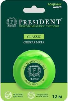 - PRESIDENT. Межзубный Флосс фтор + мята вощеный, 12 м по выгодной цене 250 р. руб.;