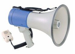 Мегафон ручной с плечевым ремнем Show ER-66 25 Вт радиус действия по данным производителя 500-700 метров выносной микрофон плечевой ремень ручка вес 1.65 Кг., 12В., 8 батарей тип LR14 К данному устройству рекомендуем Преобразователь Необходима предоплата не менее 10%.