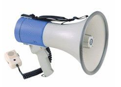 Мегафон ручной с плечевым ремнем Show ER-66S/W 25 Вт выносной микрофон плечевой ремень + ручка радиус действия по данным производителя 500-700 метров сирена свисток вес 1.65 Кг 12В 8 батарей тип LR14 Необходима предоплата не менее 10%.