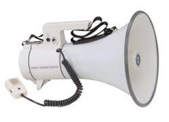 Плечевой Мегафон 35 Вт радиус действия по данным производителя 500-700 метров возможность установки на штативе выносной микрофон сирена вес 2.5 Кг 12В 8 батарей тип LR14 в комплекте шнур для подключения к прикуривателю автомобиля Необходима предоплата не менее 10%.