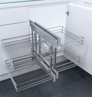 Комплектация: рама, 2 внешних корзины , 2 внутренних корзины, доводчик плавного закрывания, фиксаторы корзин, крепёжная фурнитура. Система на распашной фасад, подходит на ширину фасада 450 мм, размер корпуса минимум 900 мм. None