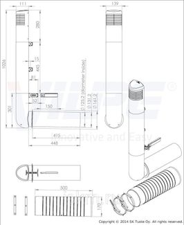 Монтаж: ROSS -125/135 устанавливают в отверстие в цоколе диаметром 135 мм. Горизонтальный патрубок соединяют с воздуховодом диаметром 125 мм. Вертикальная труба крепится к стене кронштейнами.